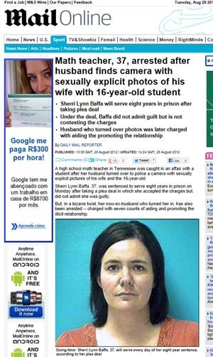 O caso veio à tona revelado pelo ex-marido de Sherri, que mostrou à polícia fotos em que ela aparecia nua ou mantendo relações com o garoto.